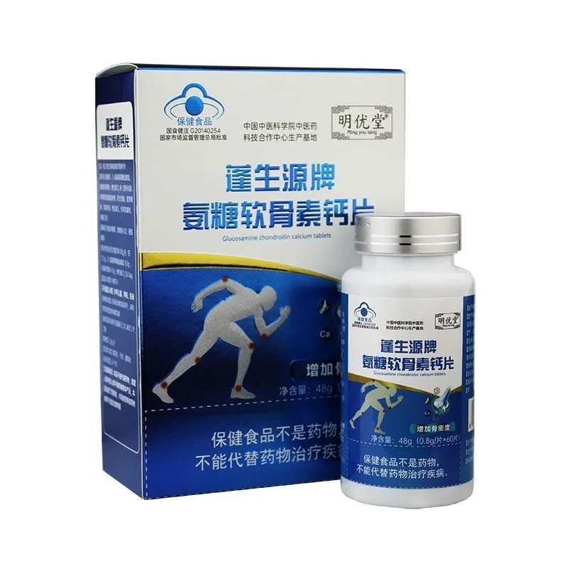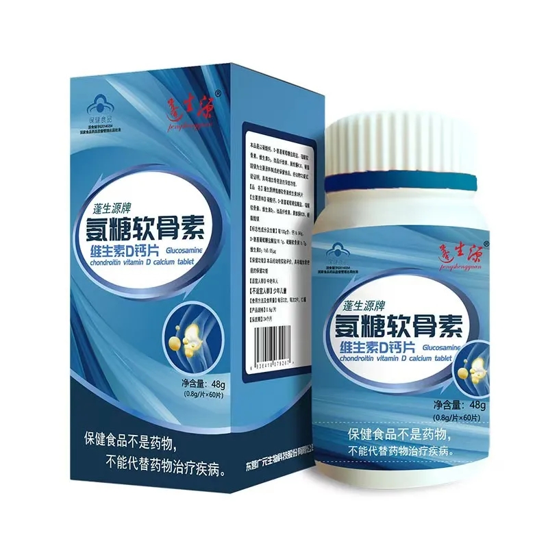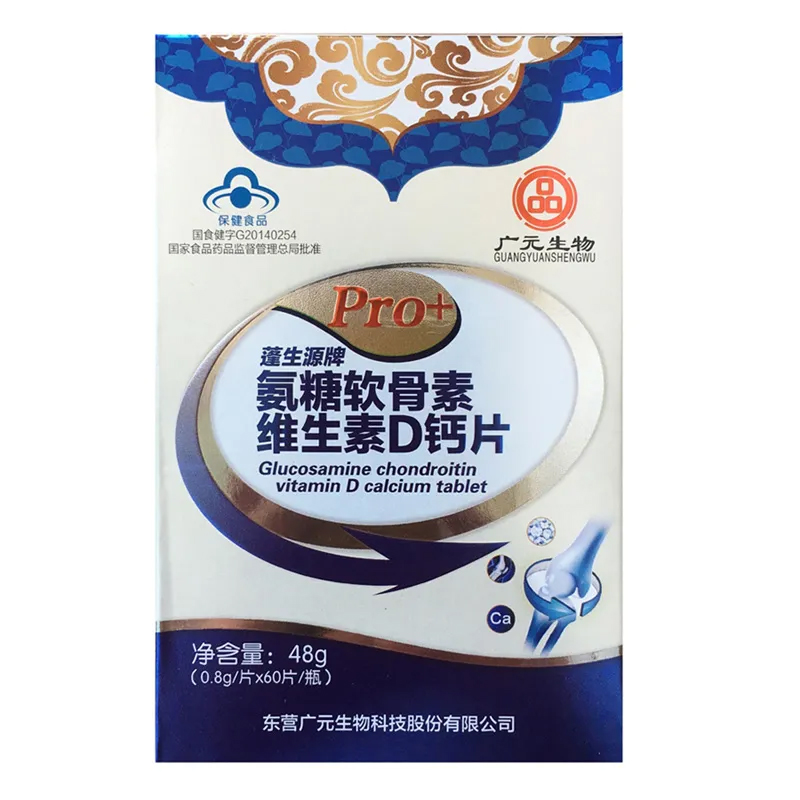主要原料:碳酸鈣、D-氨基葡萄糖鹽酸鹽、硫酸軟骨素、維生素D3、微晶纖維素、聚維酮K30、硬脂酸鎂