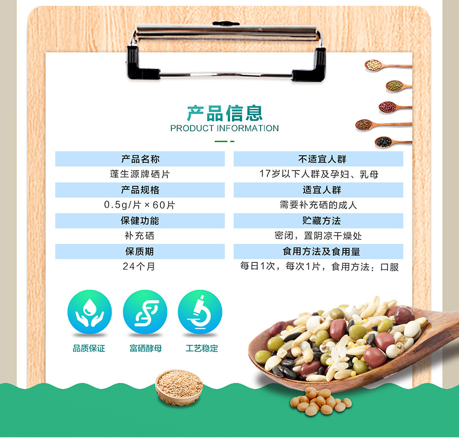 【注意事項】本品不能代替藥物。適宜人群外的人群不推薦食用本產(chǎn)品。不宜超過推薦量或與同類營養(yǎng)素同時食用;高硒地區(qū)人群不宜食用